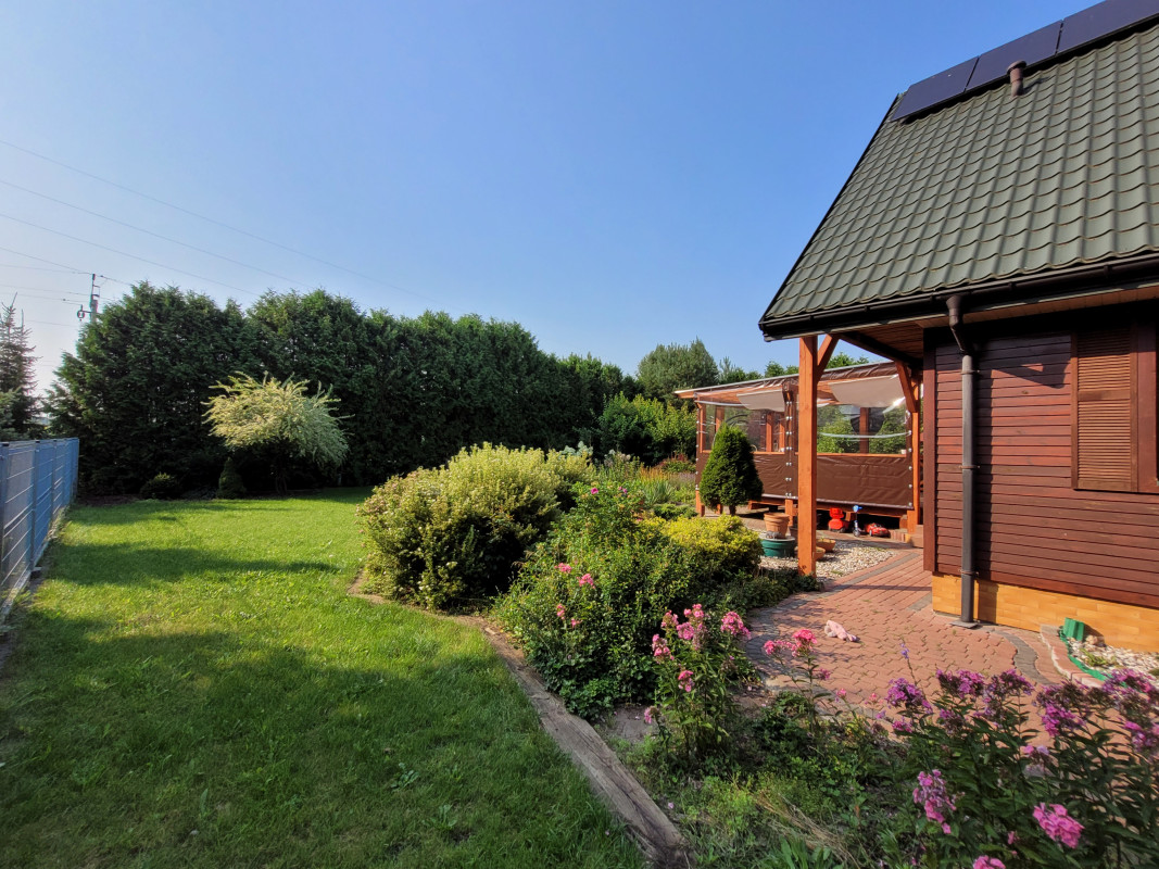 Ogrzewanie podłogowe na parterze: wiatrołap, łazienka, kuchnia. W salonie kominek z płaszczem wodnym. Dom posiada, duży, zadaszony taras oraz altanę. Jest ocieplony i bardzo dobrze trzyma ciepło.
