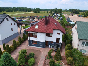 Dom jasny, przestronny, funkcjonalnie zaprojektowany. Z tarasu rozciąga się widok na piękne zielone , zadbane podwórko.