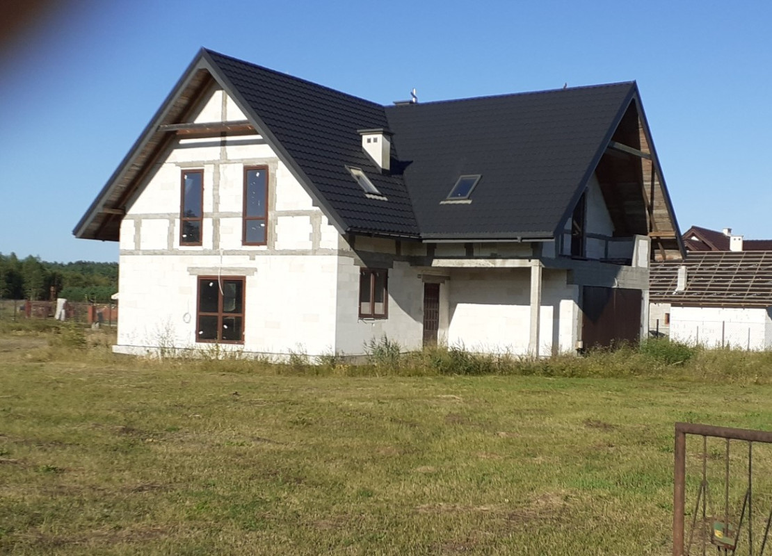 Budynek posadowiony na działce o powierzchni 3002m2. -- 50X60. Dom stan surowy zamknięty. Okna, drzwi PCV, dach kryty blachodachówką,