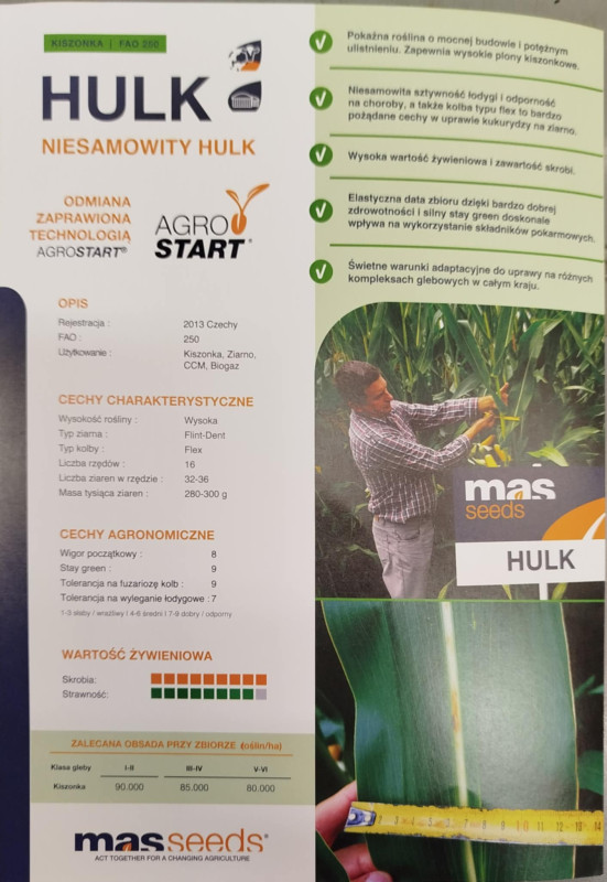 Kukurydza kwalifikowana do siewu Hulk z zaprawą od drutowca