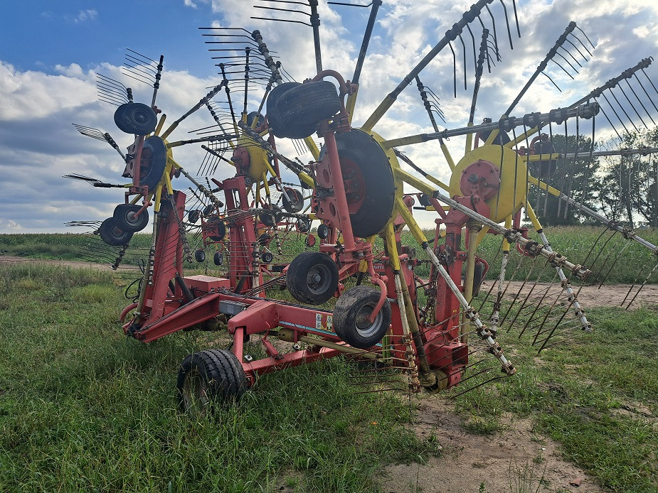 zgrabiarka 4 karuzelowa Pottinger grabi do środka od 8m do 12,5m do złożenia częsciowo już zlożona jak widać na pierwszym zdjenciu niska cena lub na czesci tylko całe kompletne gwiazdy pasują do innych modeli